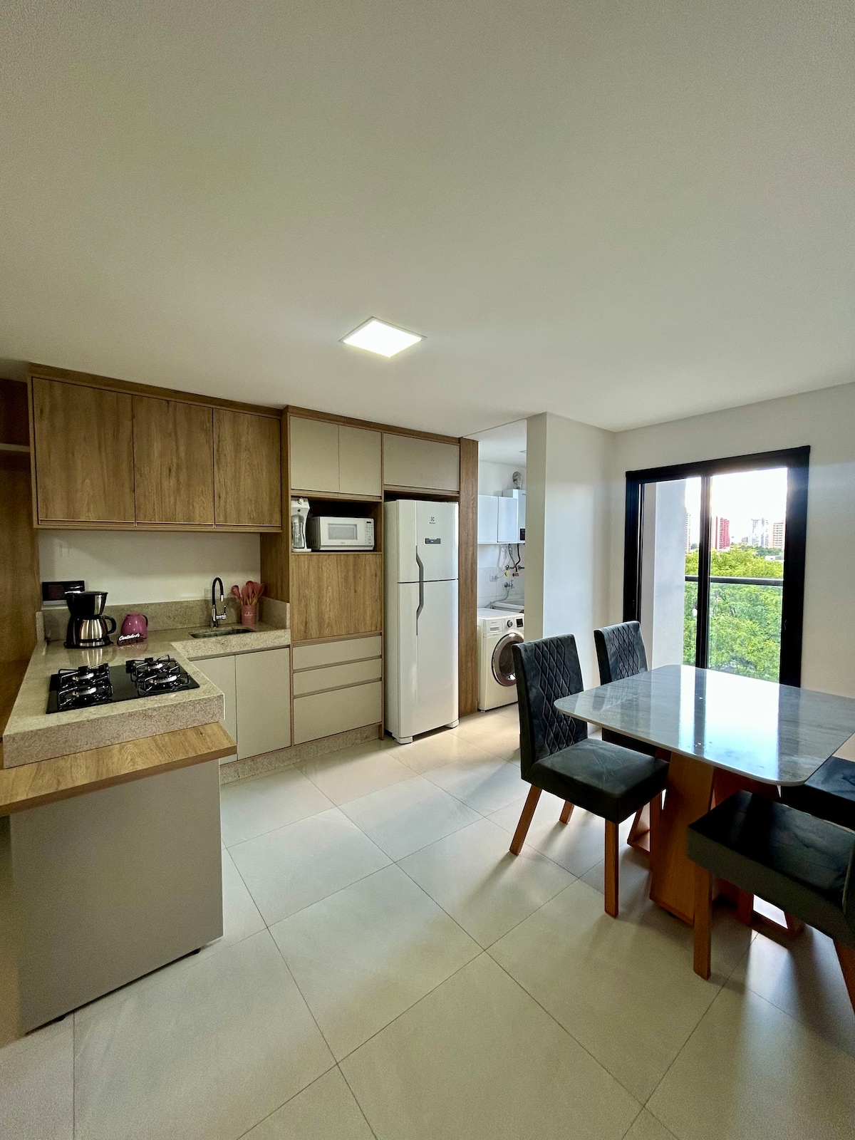 Prédio alto padrão, ótima localização no centro da cidade, academia, piscina e lavanderia. O apartamento fica no sétimo andar e conta com todos os recursos de acessibilidade e segurança, com portaria 24h. Fica no centro da cidade, com bares e restaurantes, mercados, farmácia, posto de gasolina, panificadora e bancos nas proximidades. Apartamento super completo e com todos os recursos para uma ótima hospedagem. Acomoda ate 4 pessoas.