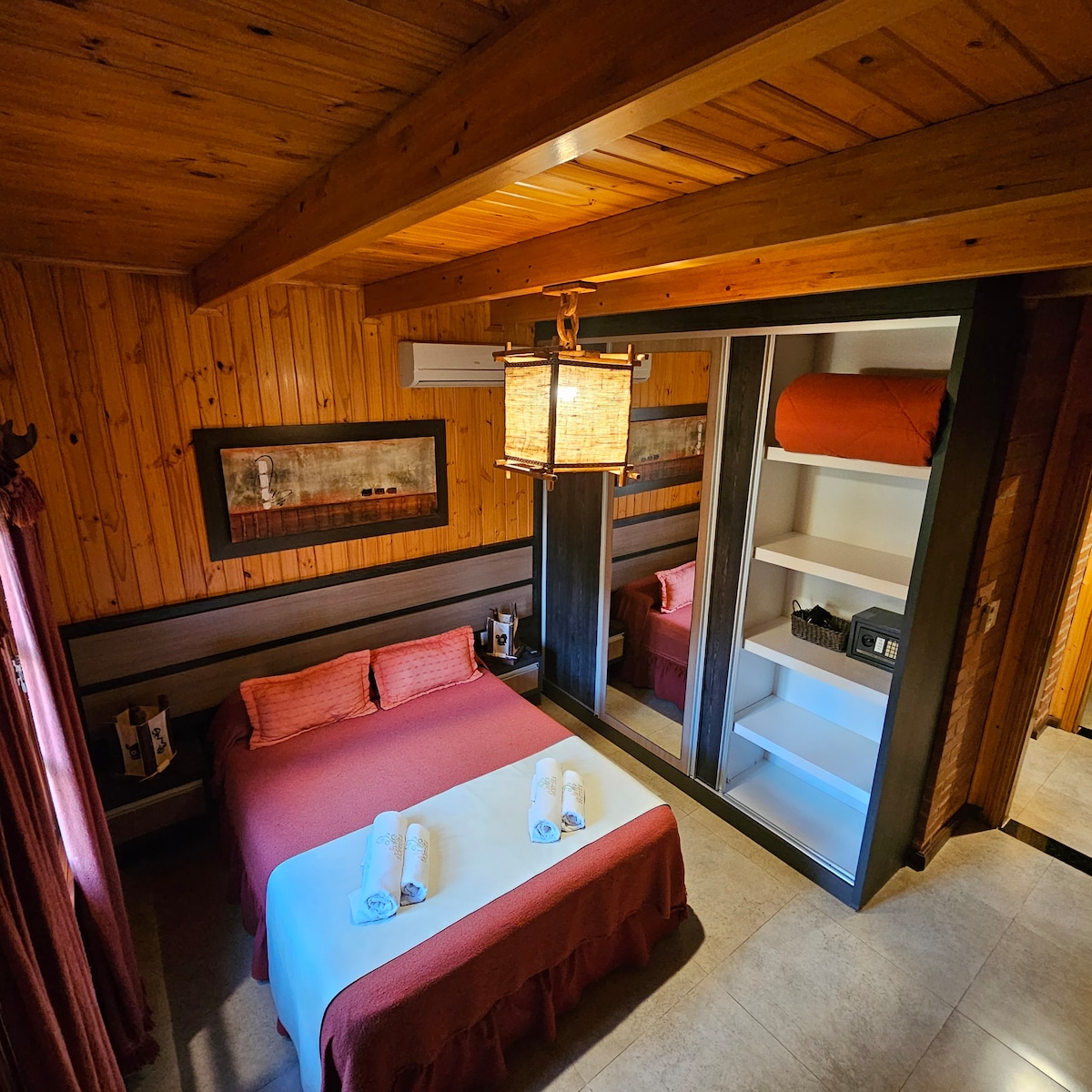 The cabins are located in the downtown area, steps from gastronomic and commercial establishments in the city and a 25-minute drive from the Iguazú Falls. Our services: ✔️ Kitchen with stove (2 burners) and basic cooking utensils.🍳 ✔️ 1 room with double bed and A.A 🛏️ ✔️ 1 room with 1 single bed and A.A 🛌 ✔️ Dining room with Smartv with Netflix service 📺 ✔️ Towels and bedding 🛌 ✔️ Amenities 🧻🧼 ✔️Wifi 🛜 ✔️ Parking 🚗 ✔️ Grill🍖