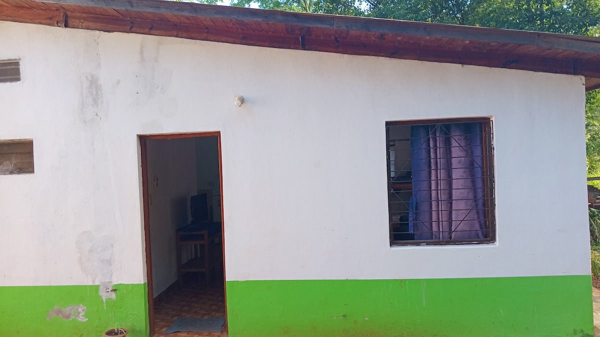 Casa Amambay 🌴 ✨refugio en la selva a metros del lago. • Capacidad para 5 personas, totalmente equipada. • Un dormitorio, 1 baño, living con una cama individual, comedor cocina, piscina privada, parrilla, quincho y cochera privada. • Podrás disfrutar de la naturaleza, rodeado de selva misionera y atardeceres mágicos 🌿🌞. Te esperamos ♥️