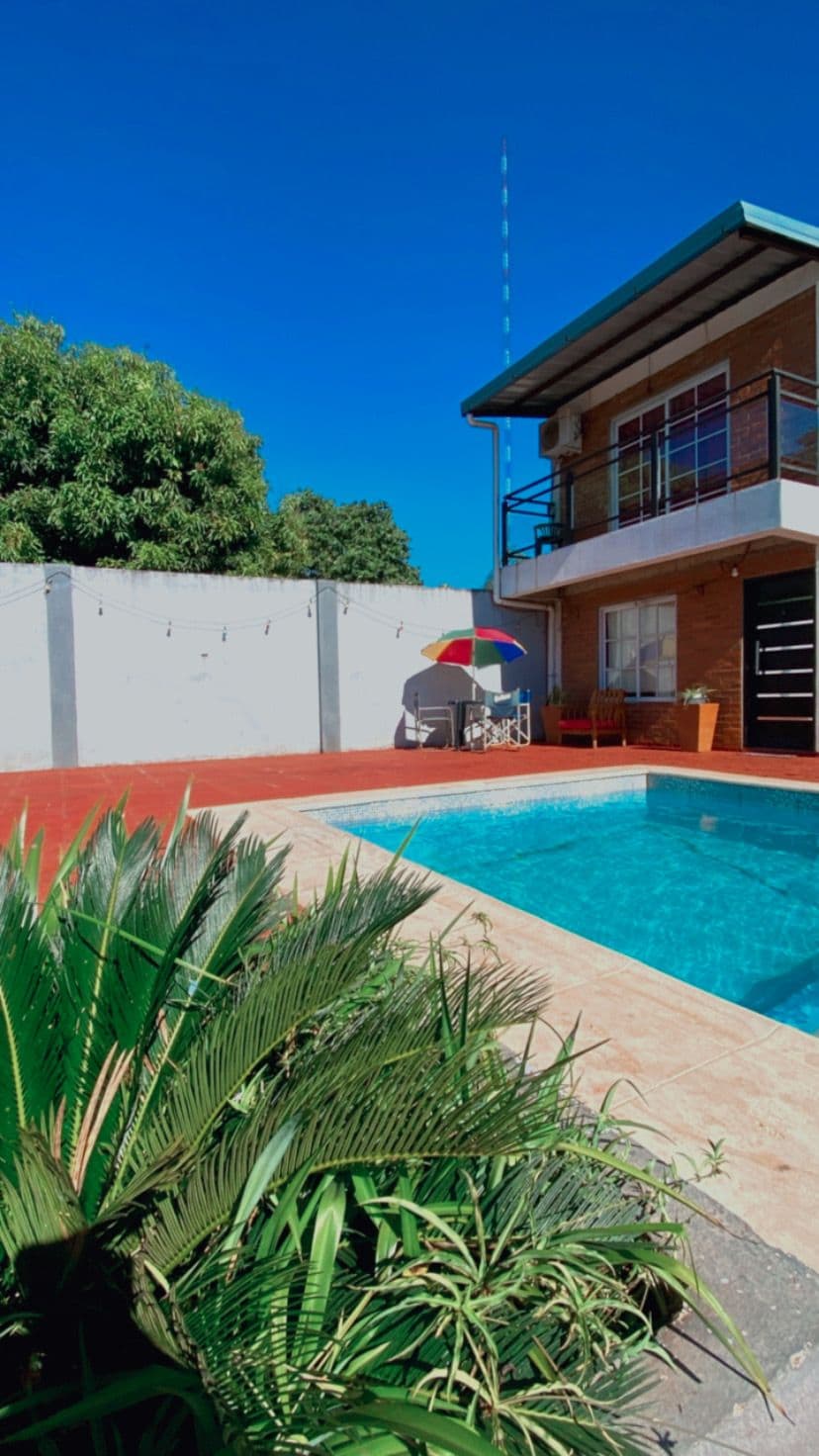 Hermosa y amplia casa, ideal para familias, parejas y grupos. Ubicada a tan solo 300 metros del centro de Puerto Iguazú, a metros de la Av. principal Victoria Aguirre donde se ubican la mayoría de las tiendas, restaurantes, farmacias y supermercados. Te va a encantar mi espacio por sus amplios espacios, su privacidad y seguridad. Es un gran lugar para descansar, compartir con familia o amigos y disfrutar del aire libre, contamos con un hermoso jardín, un patio con quincho y piscina .