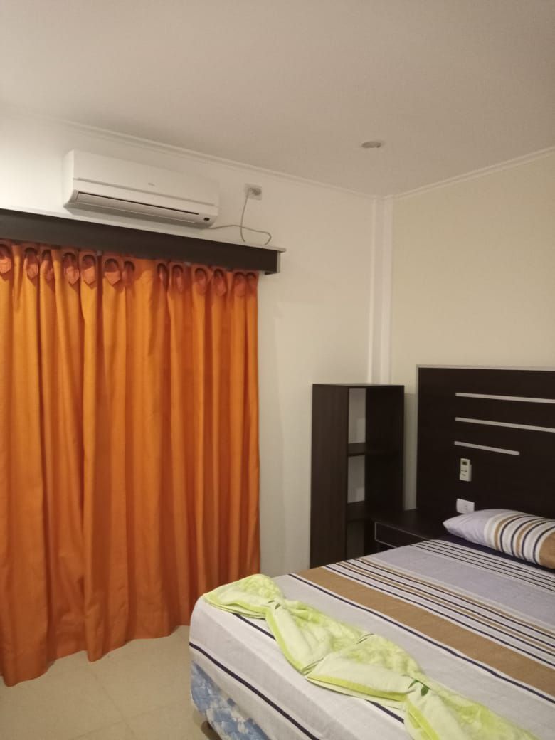 El departamento está dispuesto en el segundo piso que brinda una bella vista y esta equipado con los accesorios básicos como tv,cocina ,heladera, A.A para poder disfrutar de un ambiente familiar y tranquilo ,sin olvidar una amplia piscina.