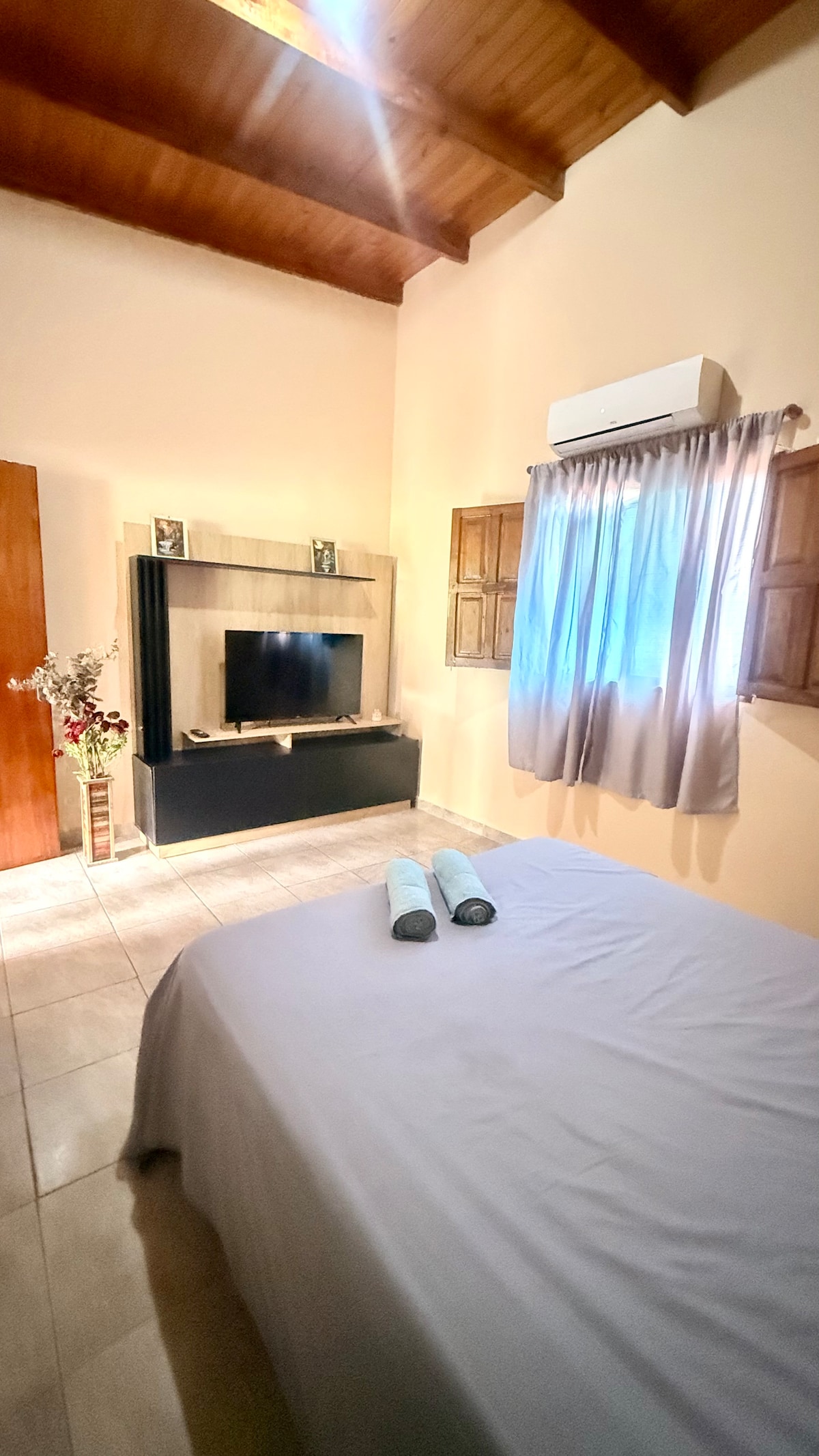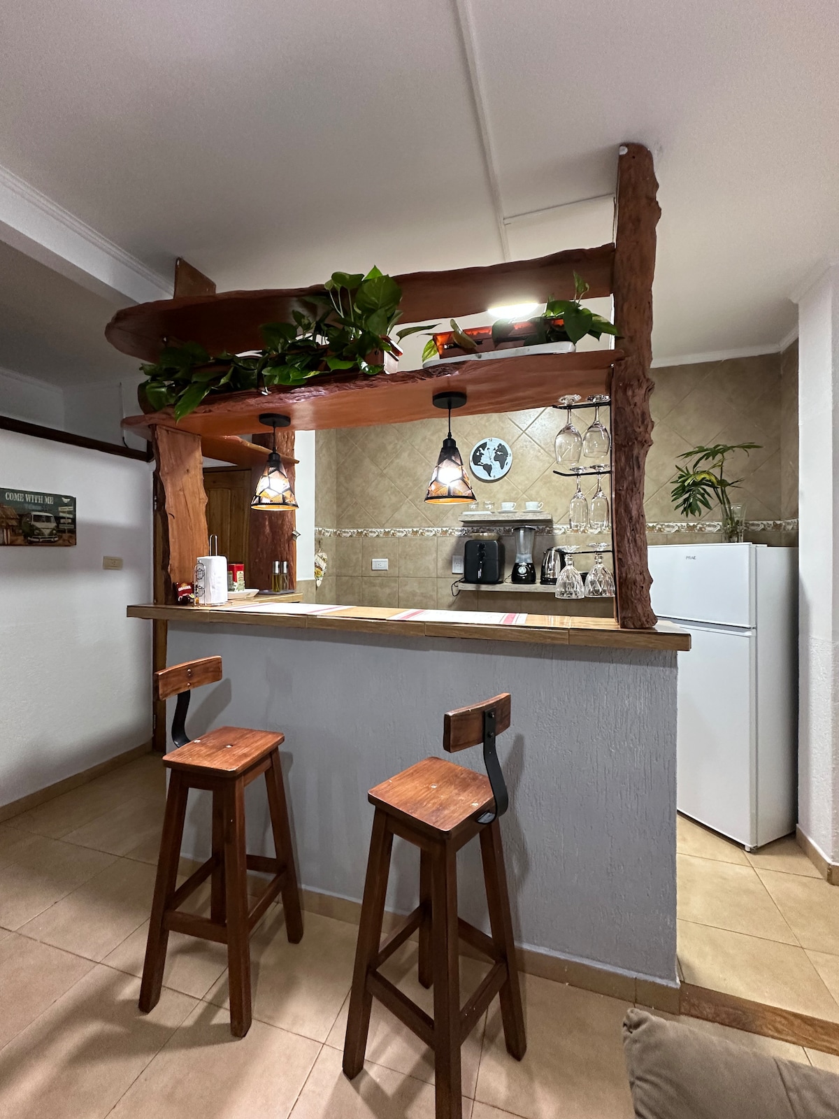 🏡 Departamento moderno y acogedor Disfrutá de un espacio cómodo y totalmente equipado. El departamento cuenta con: • Cocina completa con heladera, utensilios, tostadora, hervidor eléctrico. • Barra desayunadora integrada al living. • Living con TV y sofá cama. • Dormitorio con cama matrimonial y aire acondicionado. • Baño completo y lavadero con lavarropas. Decorado con un estilo moderno y detalles cálidos, es ideal para estadías cortas o largas, con todo lo necesario.