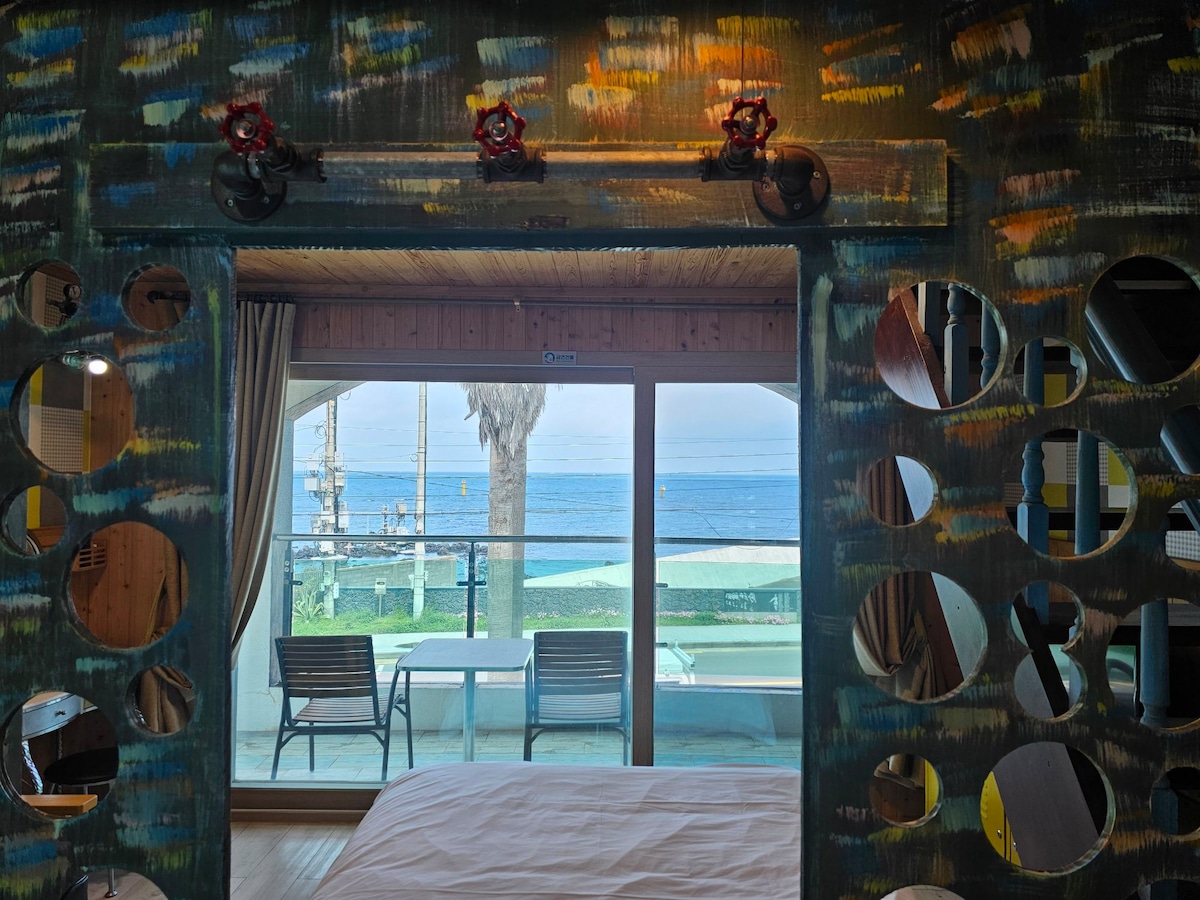 침대에 누워서 바로 볼 수 있는 통유리창 바다뷰가 너무 좋아, 새벽, 아침, 오후, 저녁 그리고 밤바다 모든 순간이 감동입니다. 잔디마당 돌담 너머로 보이는 저녁 노을의 황홀함은 도저히 말로 표현할 수 없어요. 그리고 별채 옥상 루프탑에서 불멍과 원두커피를 내리면서, 제주 애월 노을 바다를 감상해 보세요. 제주 자연의 아름다움에 감탄하실거예요. 지금 보시는 객실은 통유리 오션뷰 객실입니다. --------------------------- [ 공간 구분 안내 ] 저희 저희 숙소는 마당을 공유해서 본채와 별채로구분되어 있습니다. 오션뷰(별채)는 옥상에 A-Frame이 있는 건물이며, 본채는 바로 옆 하얀색 건물로 마당에 넓은 데크가 있습니다. 별채 옥상 루프탑은 본채, 별채 손님 공용 공간입니다. * 침대가 높아 잠자리가 불안하신 분들은 체크인 전날 호스트에게 침대가드를 요청하실수 있습니다 바베큐, 불멍은 사전 신청시 가능(별도 비용 있어요)