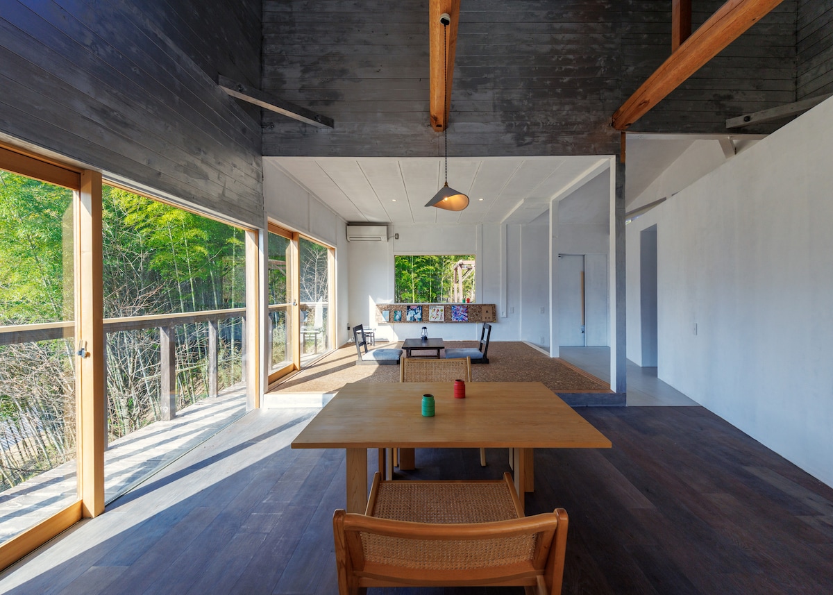 【Main House】 All 3 rooms have a view of Mt. Art house for rent for up to 8 people, 6 people recommended Fully equipped for work stay. 【Irori & spa】 A half-open-air bath with a view of the garden that can accommodate 4 to 5 people at the same time. →Bath using high quality well water from the Yatsugatake Mountains. 【Sauna area】 Russian tent sauna [MORZH MAX] that can accommodate about 8 people. 【BBQ area】 A covered area with plenty of room for about 10 people to BBQ.