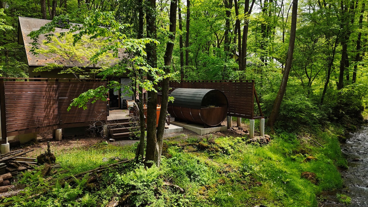 【Noël 北轻井泽 清流-2】溪流旁的桶式桑拿&柴火浴的隐秘小屋/森林与水的奢华BBQ空间