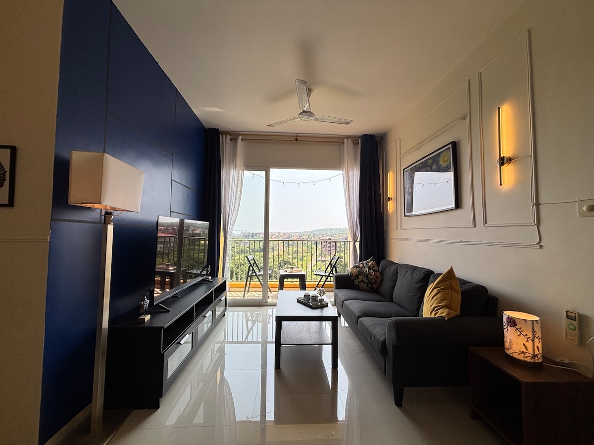 Welcome to "Harmony"- our home provides a peaceful and fulfilling stay. Enjoy the elegance & comfort of a modern well equipped 2-bedroom luxury apartment with state of art facilities set amidst lush green & scenic blues. Equipped with the finest facilities of Gym, swimming pool, squash court, sauna, library and walking tracks, this holiday would give you an enriching experience. Breathtaking view of Zuari river from terrace with an infinity pool transcends you to peace and tranquility.