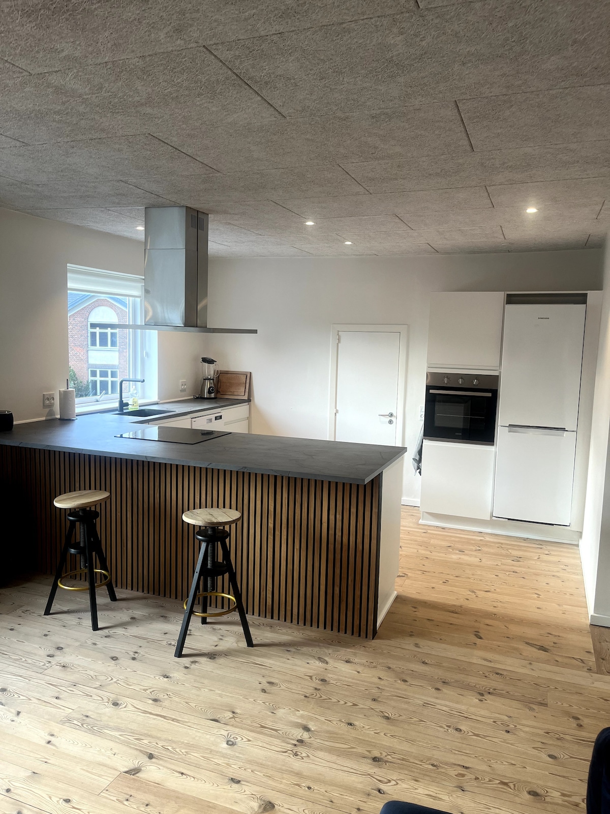 Total nyistandsat lejlighed på 70 kvm. På Herning gågade, med parkering ved lejligheden. Lejligheden indeholder 2 soveværelset med Continental dobbeltsenge, nyt lækkert badeværelse og stor stue og køkken/alrum. Lejligheden er istandsat med gode materialer og nyt køkken udstyr. Lejligheden ligger centralt med Hernings mange restauranter og hyggelige natteliv lige udenfor døren, ligesom Boxen og MCH er i tæt afstand. Ny funktionel lejlighed til messe, oplevelser i Boxen, eller ferie og afslapning