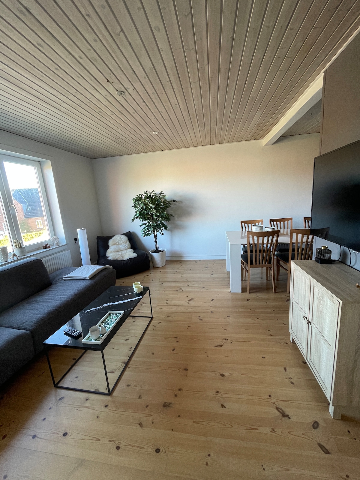 Vi har en dejlig Bed and Breakfast lejlighed med plads til hygge både inde og ude. Du får eget køkken, badeværelse, stue, soveværelse og har I elbil, så kan I lade hos os. Lejligheden har egen indgang ud til en skøn have med mulighed for både underholdning og afslapning. Du finder alt fra havemøbler, hængekøje samt udendørs aktiviteter i form af spil og en trampolin. Der er flere hyggekroge, som meget gerne må benyttes, lige som der er Mexico pejs og grill i haven. Gratis P-plads foran huset.