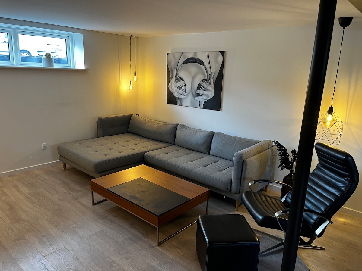 Vi har en dejlig Bed and Breakfast lejlighed med plads til hygge både inde og ude. Du får eget køkken, badeværelse, stue, soveværelse og har I elbil, så kan I lade hos os. Lejligheden har egen indgang ud til en skøn have med mulighed for både underholdning og afslapning. Du finder alt fra havemøbler, hængekøje samt udendørs aktiviteter i form af spil og en trampolin. Der er flere hyggekroge, som meget gerne må benyttes, lige som der er Mexico pejs og grill i haven. Gratis P-plads foran huset.