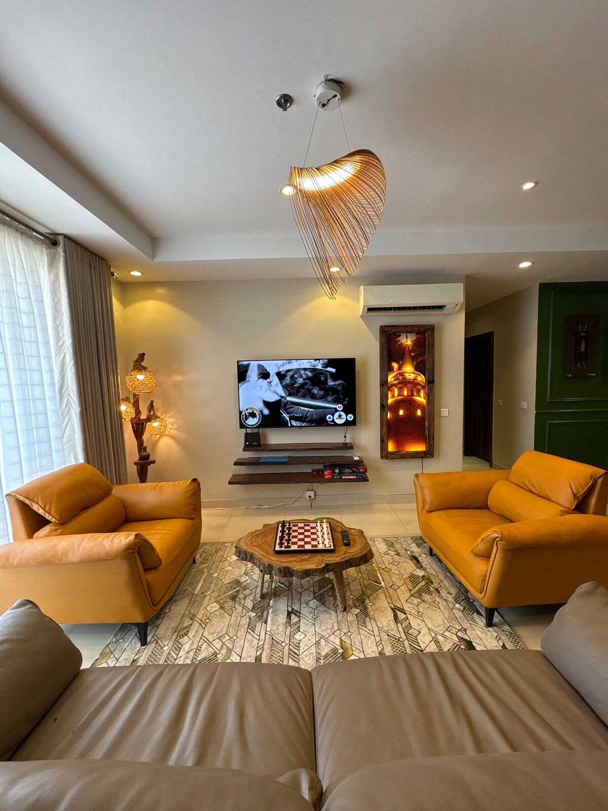 Step into pure comfort at this luxury 2-bed, 2-bath apartment in serene Lekki ikota. Enjoy movie nights with a 65" Smart TV in the living room, 55" & 42" in both bedrooms with a Ps5 game for indoor entertainment. A fully equipped kitchen with a Samsung double-door fridge and ice maker. Stay connected with fast Wi-Fi, enjoy 24/7 power with our lithium battery, free parking, and easy self check-in via smartlock. Close to Mega Chicken, Jendor, The Place & more! Perfect for families, couples, etc.