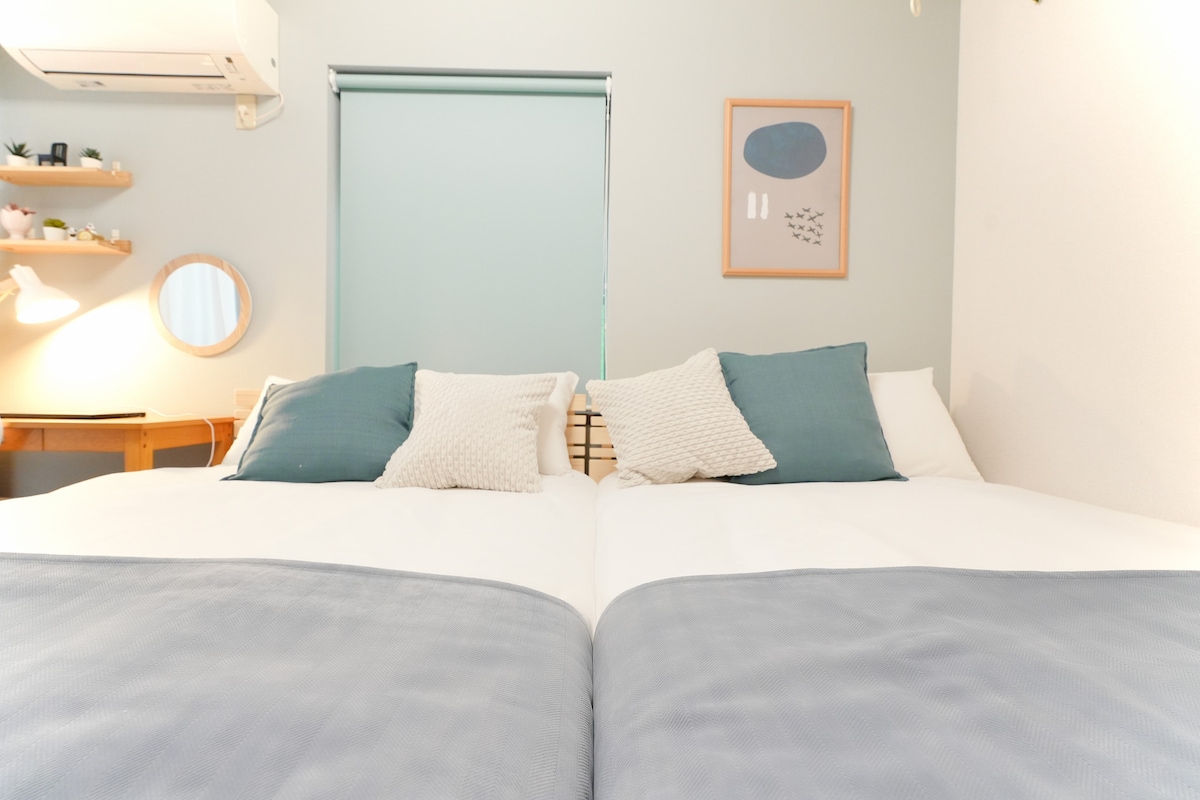 在完全隐私中放松/离车站3分钟/两条商店街购物/3张床/可住4人/26平方米/每层只有一个/wifi