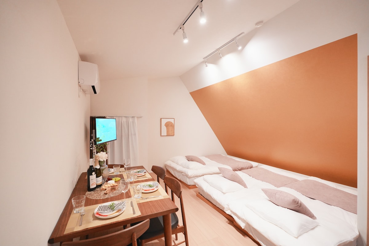 Just 4 minutes from Sangenjaya Station, this hidden-gem Airbnb offers urban convenience and a cozy ambiance. Thoughtfully designed interiors provide serene comfort, with a softly lit dining space for relaxed moments. Perfect for couples and families. - Approx. 10 minutes by train to Shibuya - 4-minute walk to Sangenjaya Station, trendy shops nearby - Many cafes and restaurants nearby - Architect-designed stylish space - Quiet residential area - Two bedrooms, four beds (incl. sofa bed)