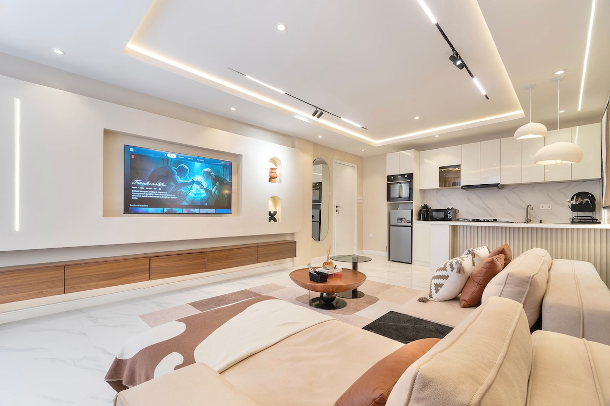 The One Bedroom Residence exudes an understated elegance that is both comfortable and timeless. This luxury apartment is fully fitted with five-star amenities. Featuring an open plan living area with a generously equipped kitchen, and a separate bedroom with our signature Amazon Alexa smart home automation. It is ideal for families or guests staying for an extended period of time. Guests also enjoy privileged access to our in house gym, rooftop lounge and warm swimming pools.