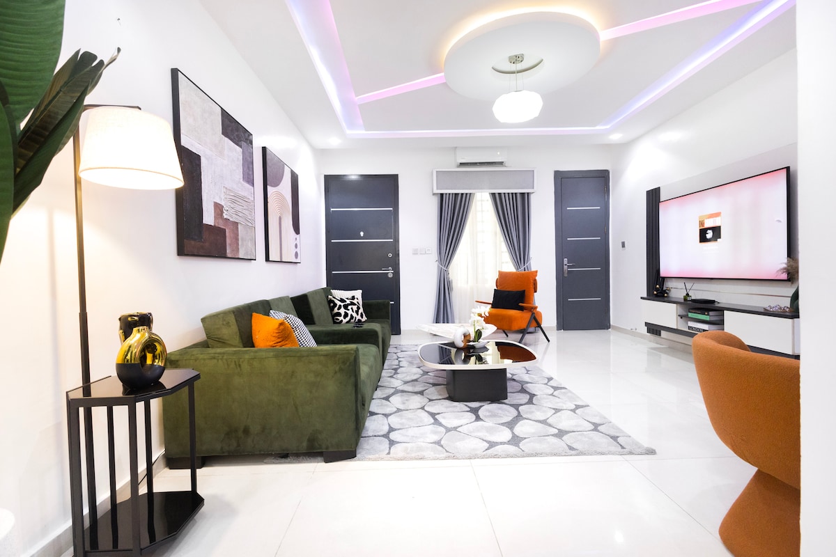 Welcome to Elmstead Luxury Aprt , your stylish retreat in Lekki Ikota. This 2BR/2BA haven offers A/C comfort, a 65″ TV in the living room, 43″ TV in bedrooms, free stable unlimited Wi-Fi, and 24/7 power with inverter & solar. Enjoy smartlock self check-in, free parking, an in-unit washer, and a kids’ bouncing castle. 1 Free cleaning for stays over 5-6 nights. Close to Lekki conservation Center, Mega Chicken, Blackbell & Blemco. perfect for solo travelers, business guests, families, or long stay