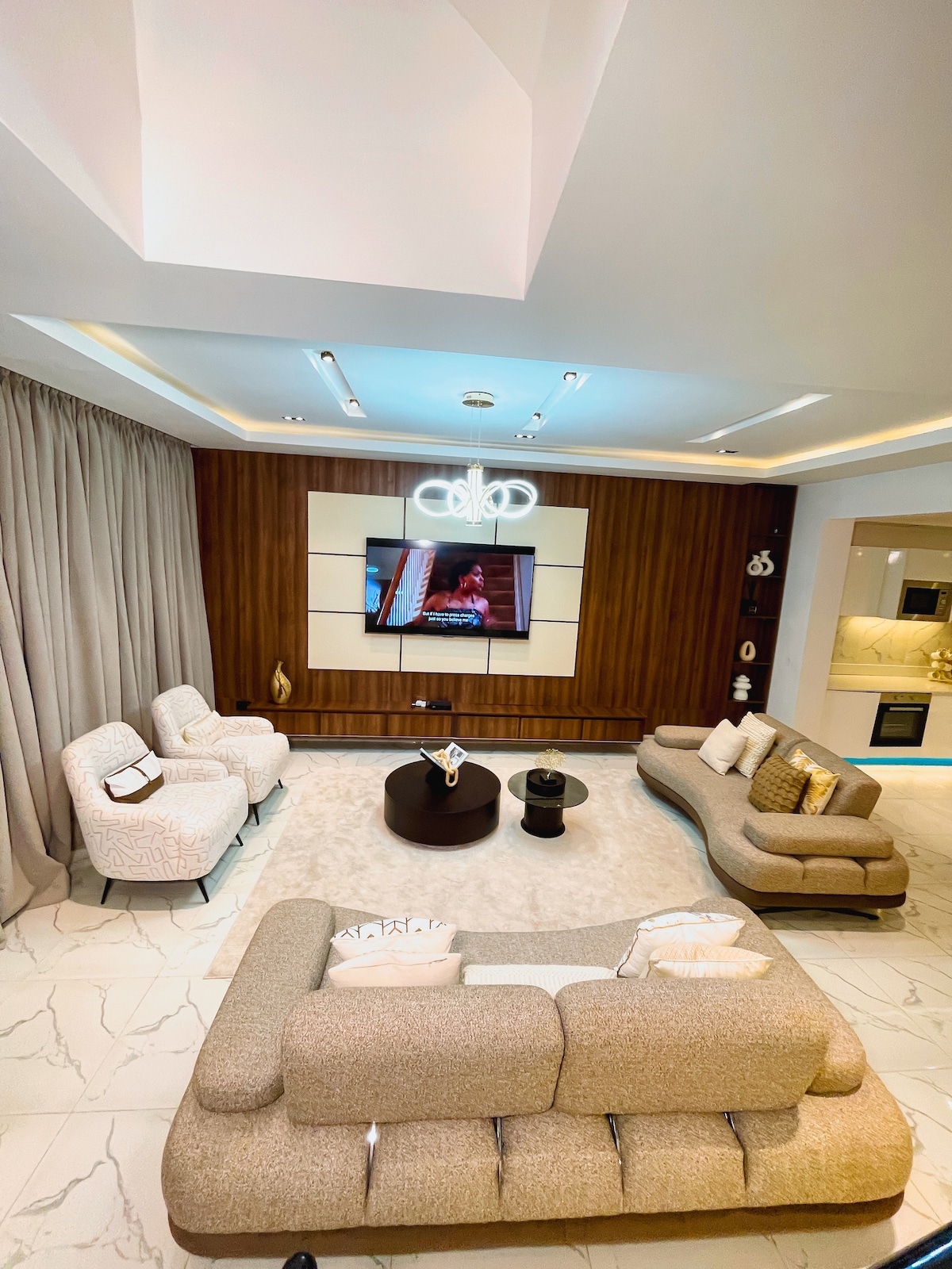Welcome to TD Luxury Suites, where luxury meets convenience in Lagos. This stylish 4-bedroom apartment offers 24/7 electricity, fast internet, and chic decor for a sophisticated stay. With 24/7 security in a gated estate, you can relax after exploring nearby attractions like movie theaters, shopping malls, restaurants, and bars. The overall decor exudes a trendy and sophisticated style, creating an inviting atmosphere that's perfect for unwinding after a busy day exploring the vibrant city.