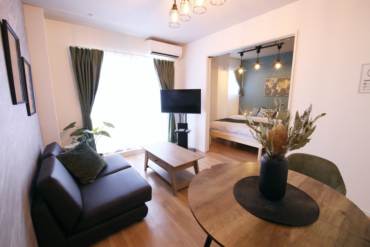 这是一间由室内设计师从零打造的 1LDK、41㎡ 公寓型民宿。 同一栋大楼内设有多间独立客房。 步行 7 分钟即可到达南海电铁与大阪地铁的天下茶屋站,从那里乘坐南海电车 2 站(约 5 分钟)即可到达难波站,无需换乘即可 35 分钟直达关西机场。 大阪地铁堺筋线还可直达京都、通天阁、黑门市场等主要观光景点。 天下茶屋是一座保留昭和时代风貌、又不断涌现新餐厅与商店的热门街区,兼具怀旧与活力。 ◆ 房源特色 安静、安全的住宅区 直达难波、关西机场、通天阁、黑门市场、京都(阪急线),无需换乘 步行 2 分钟范围内有便利店与超市 车站前设有购物中心 厨具齐全,可自行烹饪 整间独享,完全私密 自助入住系统,轻松无压力 免费洗衣机(附赠洗衣液) 洗漱用品齐全(洗发水、护发素、沐浴露、浴巾、拖鞋、牙刷、化妆棉、棉签、剃须刀) 可用日语、英语跟中文沟通 提供高速 Wi-Fi