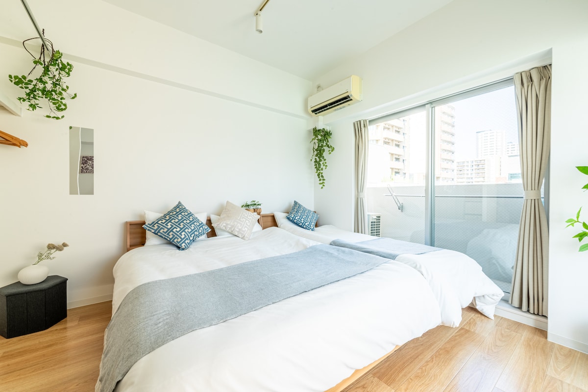 川House今里•双床房•地铁千日前线步行10分钟•近铁难波线7分钟•电车到大阪城公园便利•最大4名