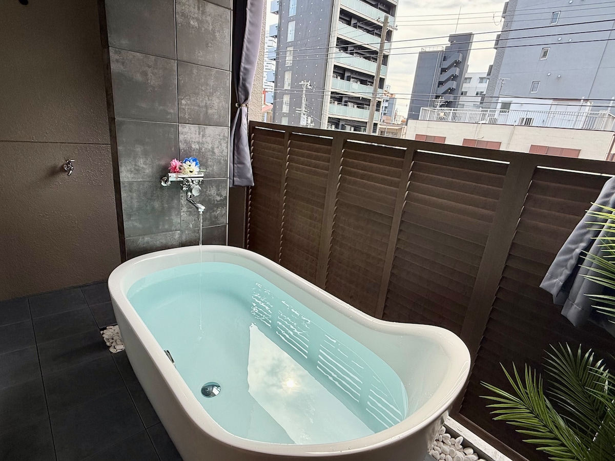 大阪心斎橋中心稀有房源,带有私人泡澡空中庭院。商店街、道顿堀、日本桥、黑门市场徒步即可到达