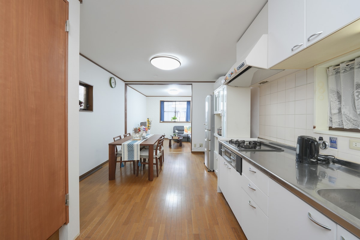 日本最传统的街区,日本传统的平房,没有台阶。关西机场36分钟直达房源附近的南海电车(NANKAI) 天下茶屋(TENGACHAYA)车站。在这处宁静房源中,与全家人尽情放松。 房源周边地铁站与火车站信息: 地下铁 岸里(KISHINOSATO)车站,400米 步行4分钟。南海电车(NANKAI) 天下茶屋(TENGACHAYA)车站,700米 步行7分钟。 房源周边有很多便利店与超市,距离最近的步行2分钟。 房源步行7分钟内有3个地铁站和火车站,其中最近的仅步行4分钟。房源到达以下地点都可以直达,无需换乘。 关西国际机场:36分钟 難波:4分钟。 道頓堀:5分钟。 心斎橋:6分钟。 梅田:13分钟。 新大阪(Shin-Osaka) 21分钟。 大阪城(Osaka Castle) 19分钟。 京都:56分钟。 房源具备一个可以淋浴的洗澡房(抱歉没有浴缸),一个厕所(全自动智能马桶)、一个洗面间、一个洗衣房(全自动洗衣机、烘干机)。非常抱歉,餐厅的面积比较小,迷你厨房。 房源是整体出租,整个楼都属于您团队使用。可以短时间免费寄存行李。
