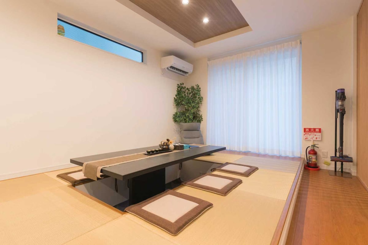 全新日式别墅,豪华高档,四房一大厅,可住15人,机场32分直达民宿,难波6分,有停车场,车站步行三分