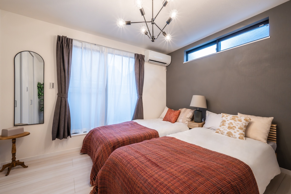 This modern 3LDK brand-new house is located in the heart of Kobe, Sannomiya. It is in a quiet residential area, ensuring a peaceful night despite being in the city. With free parking available on the first floor of the premises, it is an ideal location for sightseeing or business trips. It is only a 7-minute walk from JR Sannomiya Station, offering excellent access to major tourist spots and transportation facilities