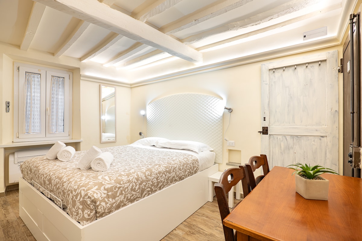 Modern and bright studio apartment recently renovated, located on the second floor of a historic building from 15th century, in the very heart historic centre of Florence. Thanks to its strategic position it is possible to visit on foot most of the monuments, churches and important squares in less than 7 minutes. It s only few minuts from the important expo area in florence, fortezza da basso, where take place very important events like Pitti uomo. Cleaning fee extra, please read the house rules