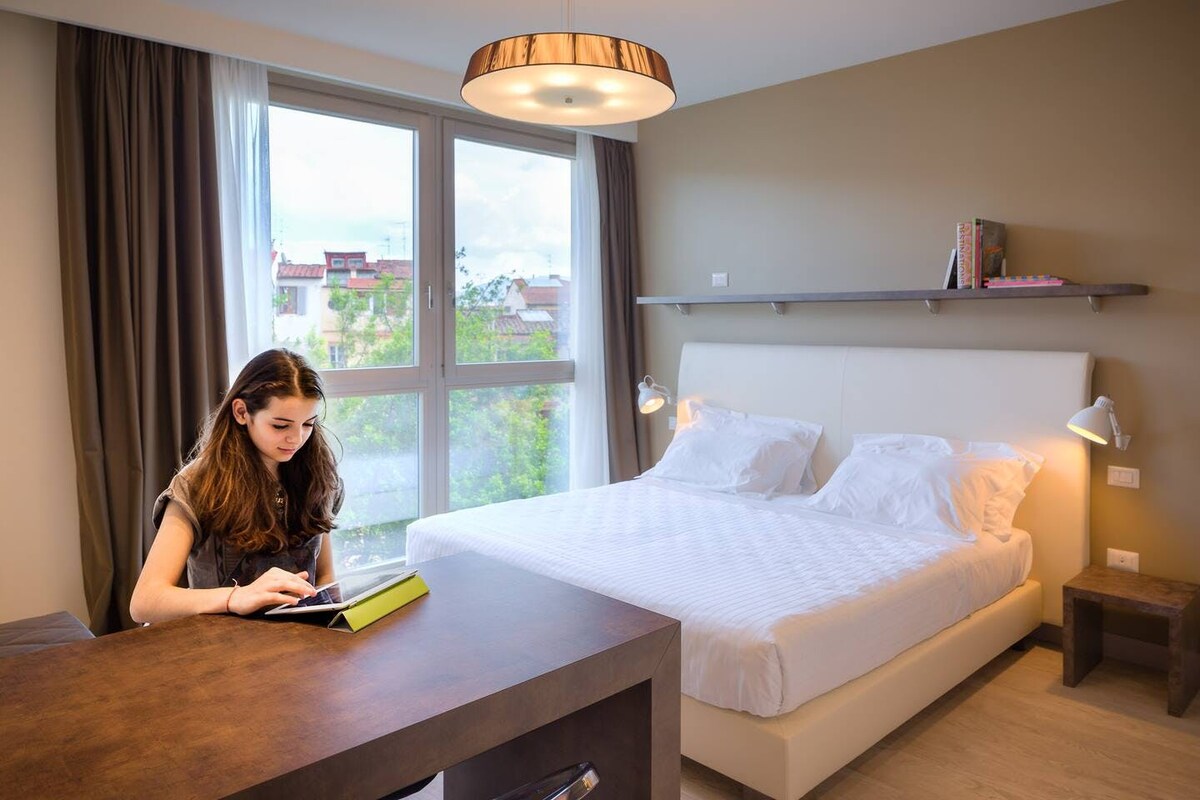 Goditi Firenze e i suoi dintorni in questo moderno palazzo boutique, appositamente progettato per rendere il divertimento la tua unica preoccupazione. Rilassati e riposati o sentiti a tuo agio mentre lavori. Con la tecnologia di un hotel e un servizio accogliente e personalizzato vogliamo che il tuo soggiorno a Firenze sia splendido. Suite tipo loft completamente attrezzate, ognuna con uno spazio di lavoro dedicato, bagno privato, frigobar, wifi, ingresso indipendente nel cuore di Firenze.