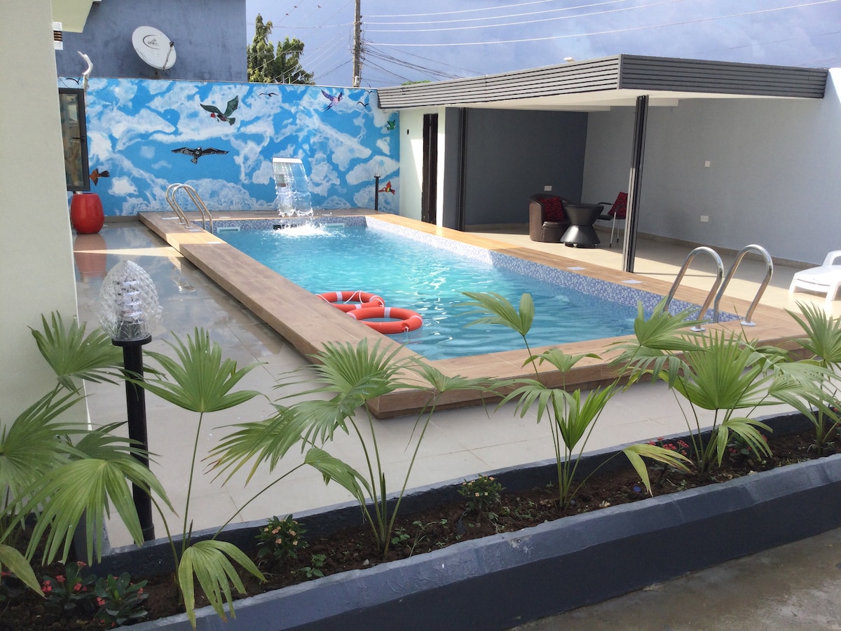 Welcome to a home designed for the perfect indoor–outdoor experience, featuring a pool, gazebo, laundry area, TV bar, and a compact fitness area for light workouts. Inside, enjoy a living space with a 65-inch smart TV and leather seating. The two bedrooms are ensuite, with modern bathrooms and excellent water pressure. The kitchen is fitted with burners and a heat extractor. WiFi is fast and wired, and power is available 24/7. A security guard and porter are always at your service.