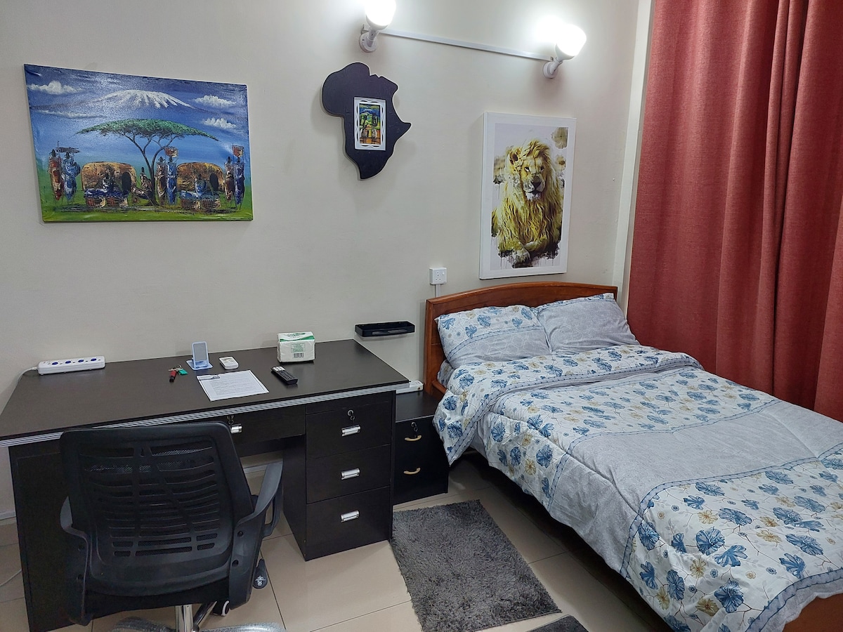 Welcome to your modern retreat in Dar es Salaam! Nestled in lush greenery, our space fondly called The Little Forest offers a peaceful escape with modern comfort. Enjoy a stylish interior with wooden accents, a cozy bed, a TV lounge, a study area, and a well-equipped kitchen. Located near Kimara Stopover (not the city center!). No pets allowed. Perfect for solo travelers, couples, and business guest Location Note: guests mistakenly head to the city center Use google maps for directions.