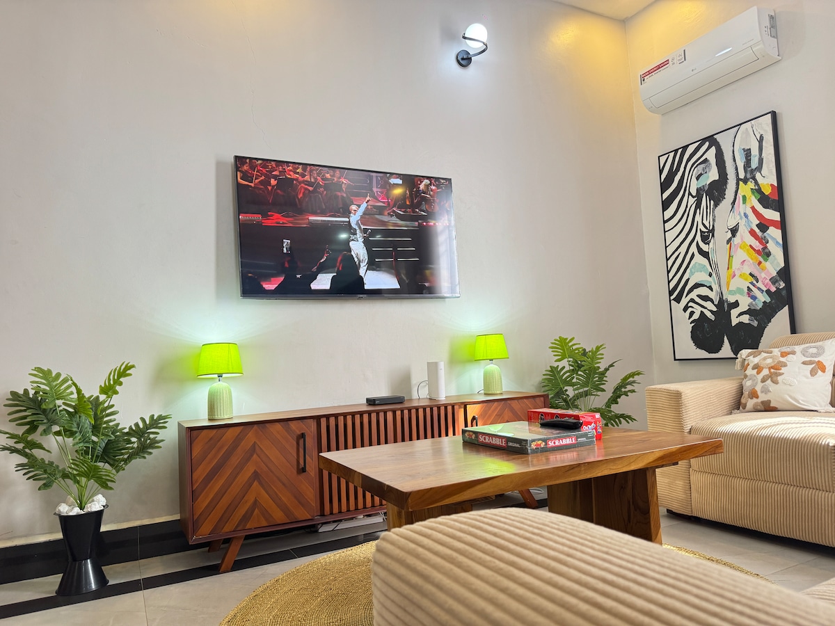 One Palm Centre apartment at Tabata Sanene, Dar es Salaam, Tanzania, is not just a place to stay; it is an oasis of luxury, comfort, and recreation. With its beautiful sitting room, smart TV, free Wi-Fi, sofa beds, air conditioning, Jacuzzi, bedroom with AC, open kitchen, and serene garden view with a lounge and food court, it provides the ultimate setting for guests to recreate, refresh, and create unforgettable memories.