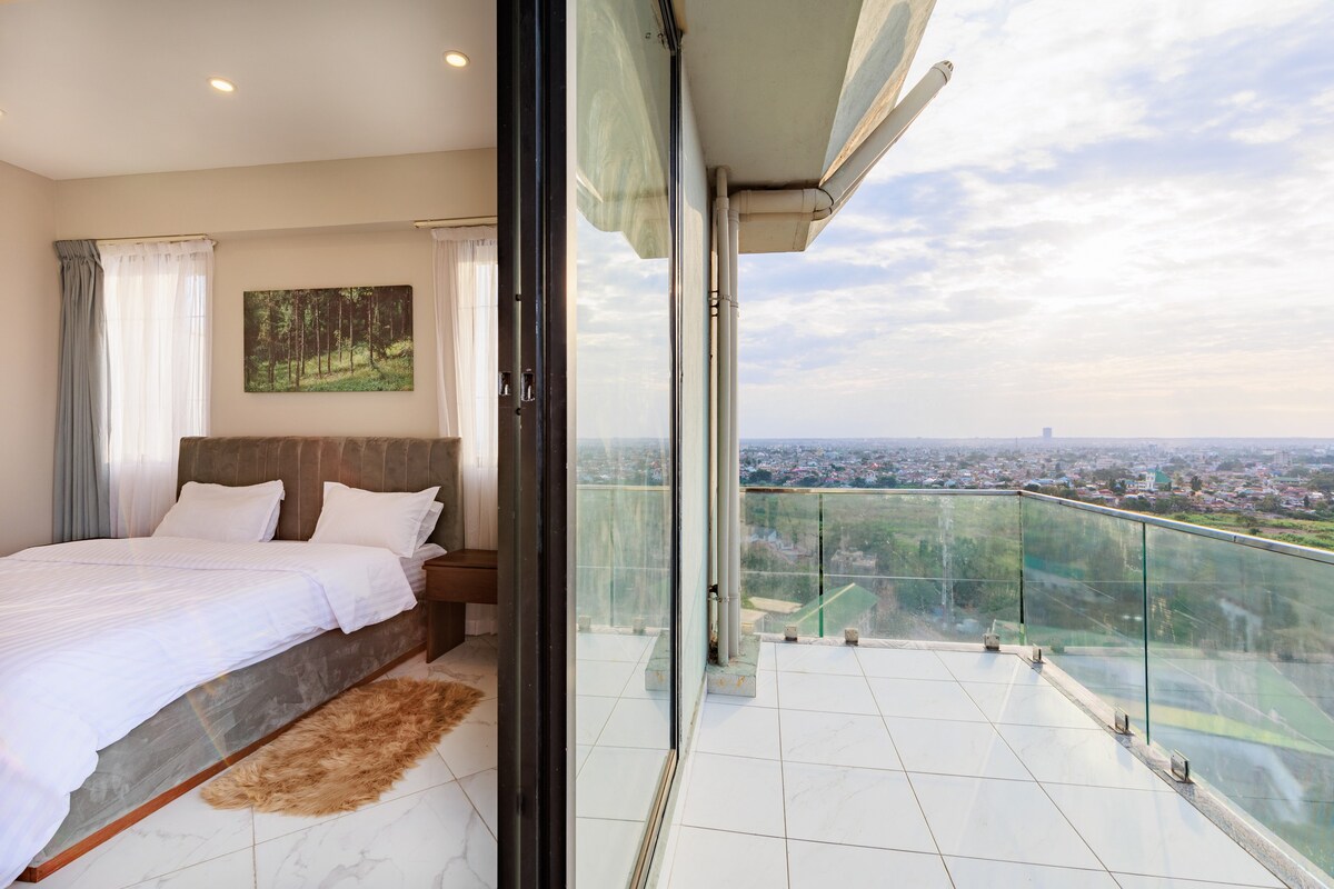 Welcome to our luxurious 22ND-floor studio apartment. Enjoy a 65" Smart 4K TV, fast WIFI, cleaning services, and a fully equipped kitchen. Pizza Hut and a supermarket are just 5 minutes away. Indulge in the luxurious bathroom with all amenities . Take in stunning views from floor-to-ceiling windows. Experience ultimate luxury and convenience in this exceptional studio apartment As you gaze out from the floor-to-ceiling windows, you'll be treated to awe-inspiring views from the 22ND floor