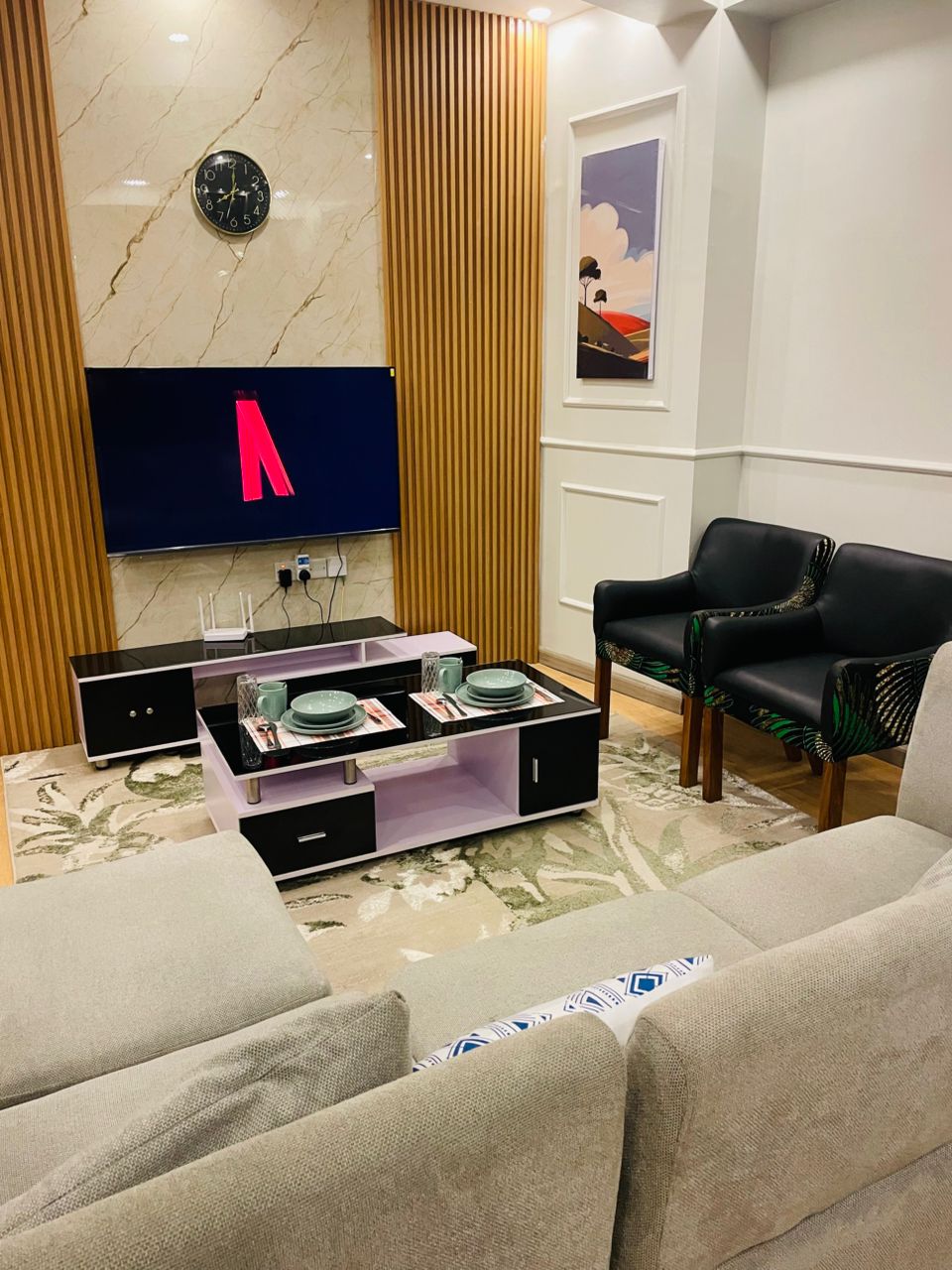 Welcome to our luxurious 15TH-floor studio apartment. Enjoy a 65" Smart Curved TV, fast WIFI, cleaning services, and a fully equipped kitchen. Pizza Hut and a supermarket are just 5 minutes away. Indulge in the luxurious bathroom with all amenities . Take in stunning views from floor-to-ceiling windows. Experience ultimate luxury and convenience in this exceptional studio apartment As you gaze out from the floor-to-ceiling windows, you'll be treated to awe-inspiring views from the 15TH floor