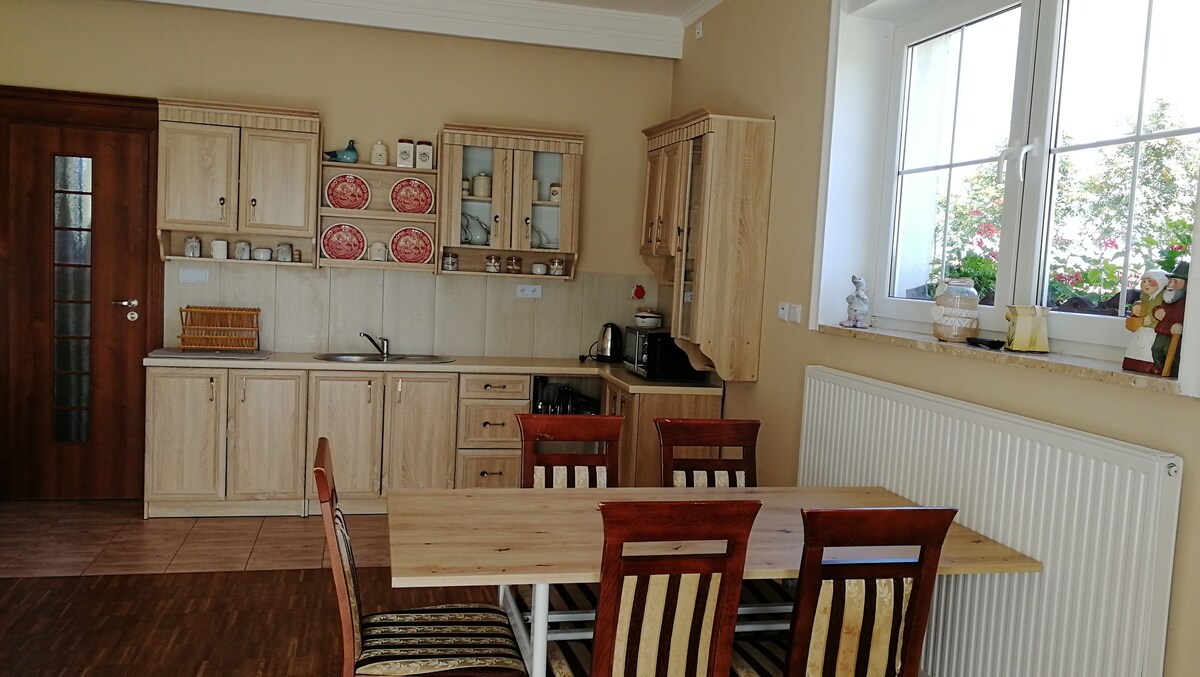 Świeżo wyremontowany poziom domku jednorodzinnego. Apartament: pokój dzienny wyposażony w dwie kanapy dwuosobowe, kuchnię i łazienkę z kabiną prysznicową. Pełne wyposażenie kuchni. W pokoju TV. Blisko do plaży miejskiej nad jeziorem Jeziorak jak i blisko do centrum miasta. Możliwość zrobienia grilla w ogrodowej altance.