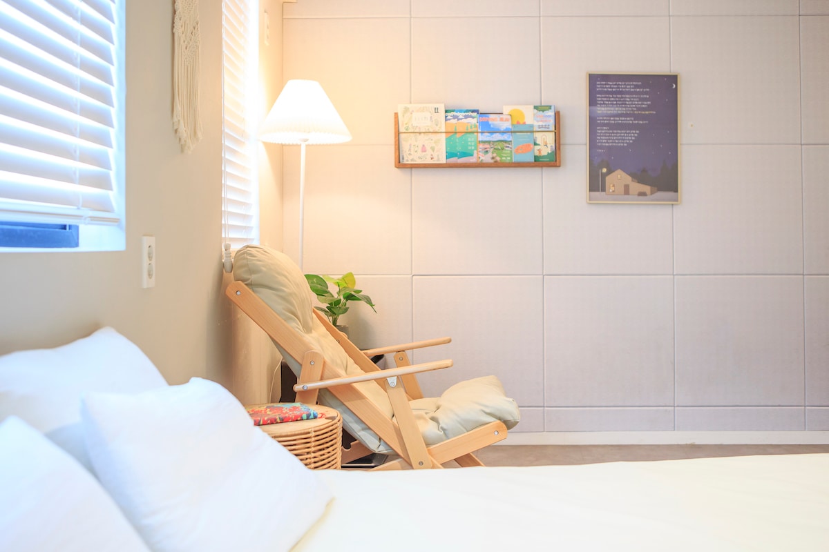 Book&Bed(双人)济州热门景点感性书店|暖炉|东门市场1分钟