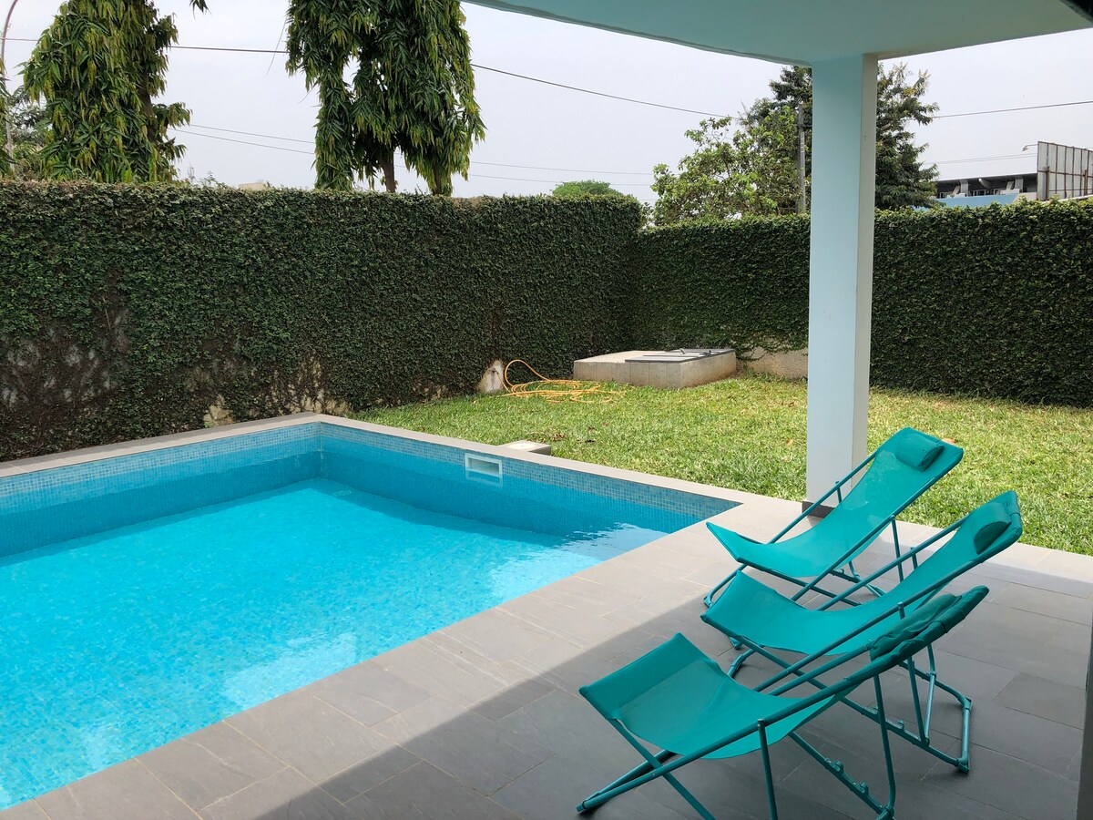 Maison de vacances familiale au cœur d’Abidjan ! Vous cherchez un endroit idéal pour passer des vacances en famille ou entre amis ? Nous vous proposons la Villa NOEKA située en plein centre-ville, à proximité des commerces, restaurants, et attractions touristiques. Capacité : jusqu'à 8 personnes! Cette maison comprend: •4chambres spacieuses •4 Salles de bains • Une Cuisine entièrement équipée • Un grand salon lumineux avec TV et accès Wi-Fi gratuit •une jolie cour avec piscine •Un Parking