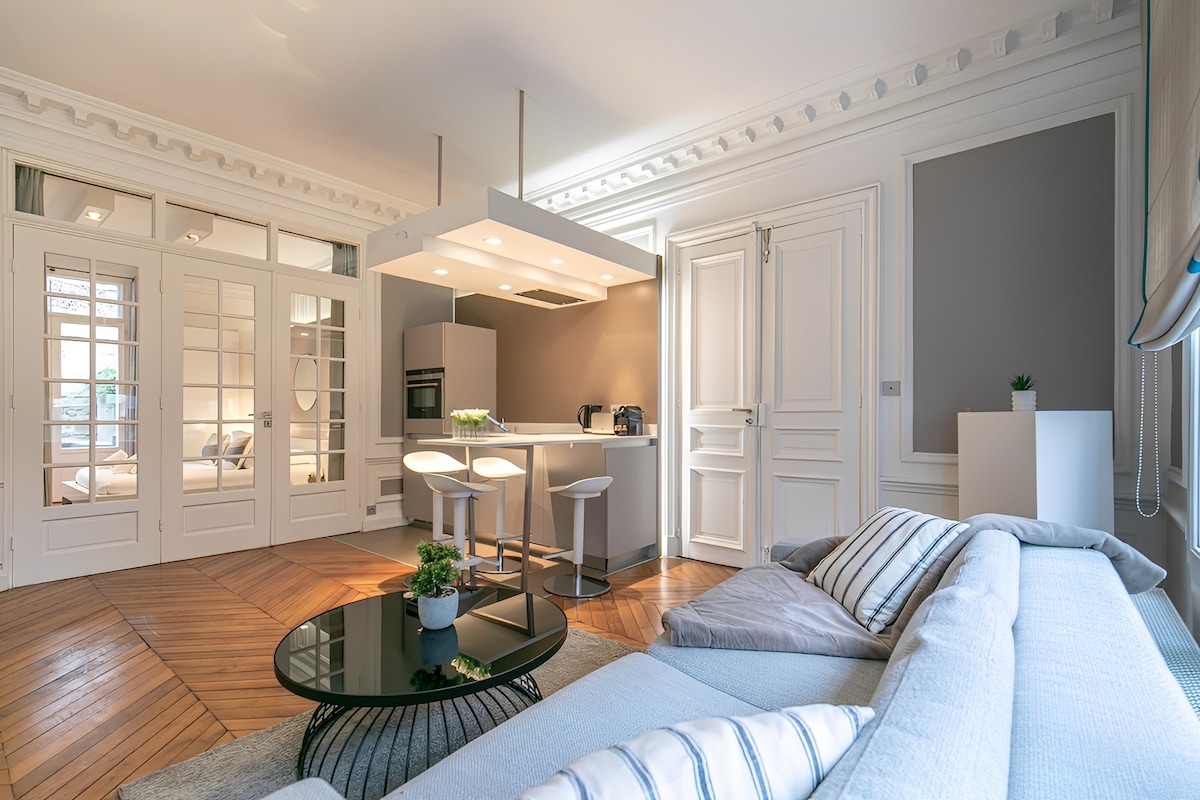 Luxueux & rare appartement avec jardin privatif, à 1 min de la place Pereire (17ᵉ). 60 m² de confort pour 4 personnes : chambre avec grand lit double, Smart TV & accès jardin, vaste salon avec canapé-lit, cuisine équipée & Smart TV. Un havre élégant & paisible au cœur d’un quartier chic et vivant de Paris. - 10min de place de l'étoile (Champs Elysées) - 10min de la gare St Lazare & des grands magasins