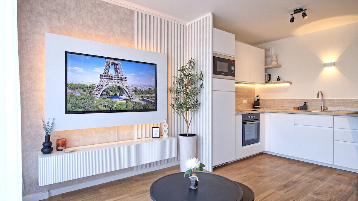 Optez pour un appartement cosy, moderne et idéalement situé. Dans un quartier calme et agréable, proche de toutes commodités essentielles et à quelques pas du métro ligne 8 "Pointe du Lac" vous permettant un accès facile et rapide à la capitale. Salon lumineux donnant accès au balcon avec un canapé convertible et coin café ☕️ Smart TV, internet haut débit et Netflix. Cuisine toute équipée, chambre lit double, avec rangements. Idéal pour les couples, amis, familles et voyages d’affaires!