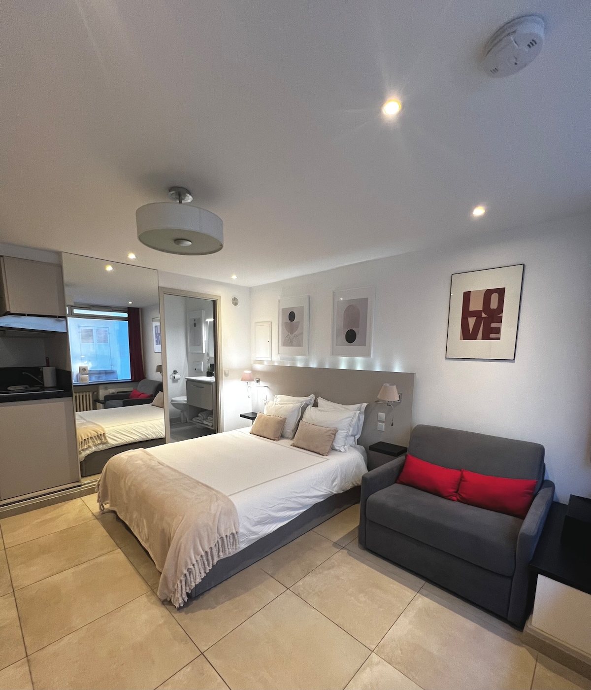 Large Studio, as a Suite, ideally located in a quiet street, close to the Eiffel Tower and 2 minutes away from La Motte Piquet Grenelle metro station. Many restaurants around too! The apartment is fully equipped with all you may need for a few days (soap, shampoo, hair dryer, toilet paper ...). Perfect for a couple with the main room being quite spacious, and convenient for 2 people wishing separate beds (sofa will be converted into a single bed) but the space becomes tighter.