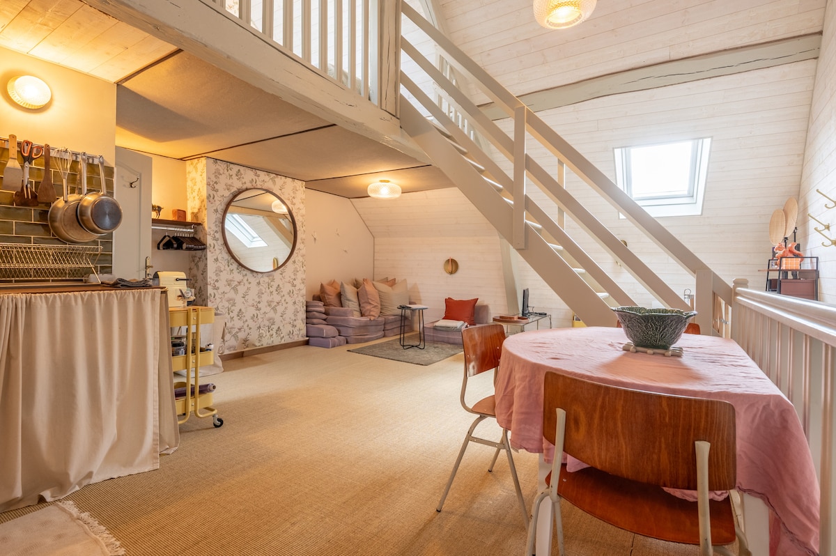 Découvrez ce logement atypique et douillet, une ancienne grange restaurée avec soin. Profitez d'une décoration unique, incluant des meubles chinés et de la barbotine, créant une ambiance chaleureuse et accueillante. Ce refuge paisible offre un espace spacieux avec une belle hauteur sous plafond, un confort exceptionnel et une baignoire à pattes de lion élégante. Vivez une expérience romantique unique dans un cadre calme et charmant, parfait pour se reconnecter et se détendre