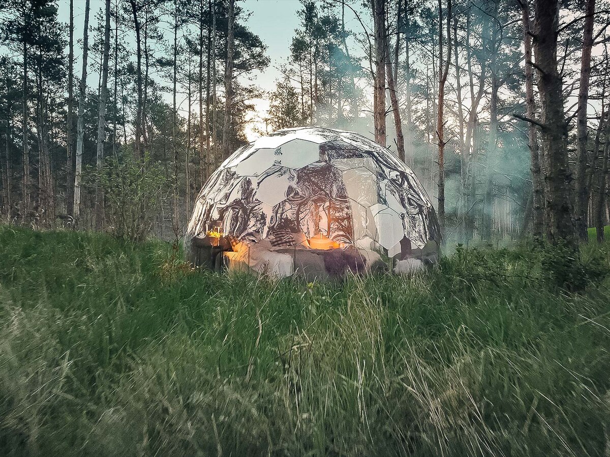 Our fabulous recent listing @LesBainsRoches is a mirrored Dome with incredible forest views. Look up to the stars in this very romantic getaway. You will be blown away by the beauty of this natural place, the Finland bath at 38C as well as the incredible lagoon overlooking the forest and island at only an hour from Paris. Look into the stars and enjoy the nature, the goats, deers, rabbits, squirrels, the birds and water.