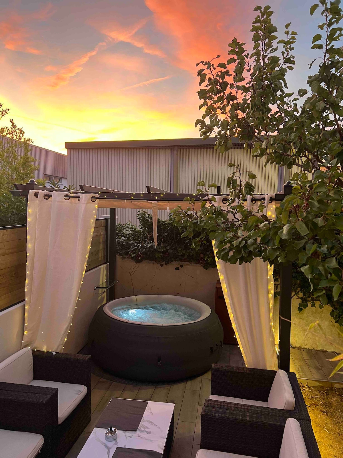 Logement unique, pour maximum 2 personnes. Une chambre élégante avec un grand lit, un dressing moderne. Salle de bain avec serviettes, gel douche, shampoing, sèche cheveux. Magnifique jardin pour profiter du barbecue en été, parking privé pour 1 véhicule. Jacuzzi en supplément au tarif de 100€ pour tout le séjour. IMPORTANT: le jacuzzi doit être réservé et reglé 48H avant l’arrivée. Cuisine tout équipée, 2 capsules de café par jour offerte, 1 machine à laver