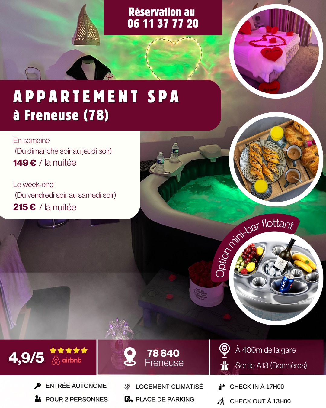 Bienvenue dans ce lieu où l'éveil de tous vos sens prendra sa pleine mesure : -> BALNEO avec CHROMOTHERAPIE -> SAUNA -> Un GRAND LIT cocooning -> Une CROIX DE SAINT ANDRE -> Un FAUTEUIL TANTRA -> TOUT LE NECESSAIRE pour vous détendre FOURNI EN DOUBLE : shampoing, gel douche, savon, gobelet, petite et grande serviette, peignoir, thé, café, machine Nespresso nouvelle génération, etc. -> Idéal ANNIVERSAIRE MARIAGE, ROMANCE, SPA -> Wifi HAUT DEBIT (TV+NETFLIX). -> 3mn à pied du centre ville