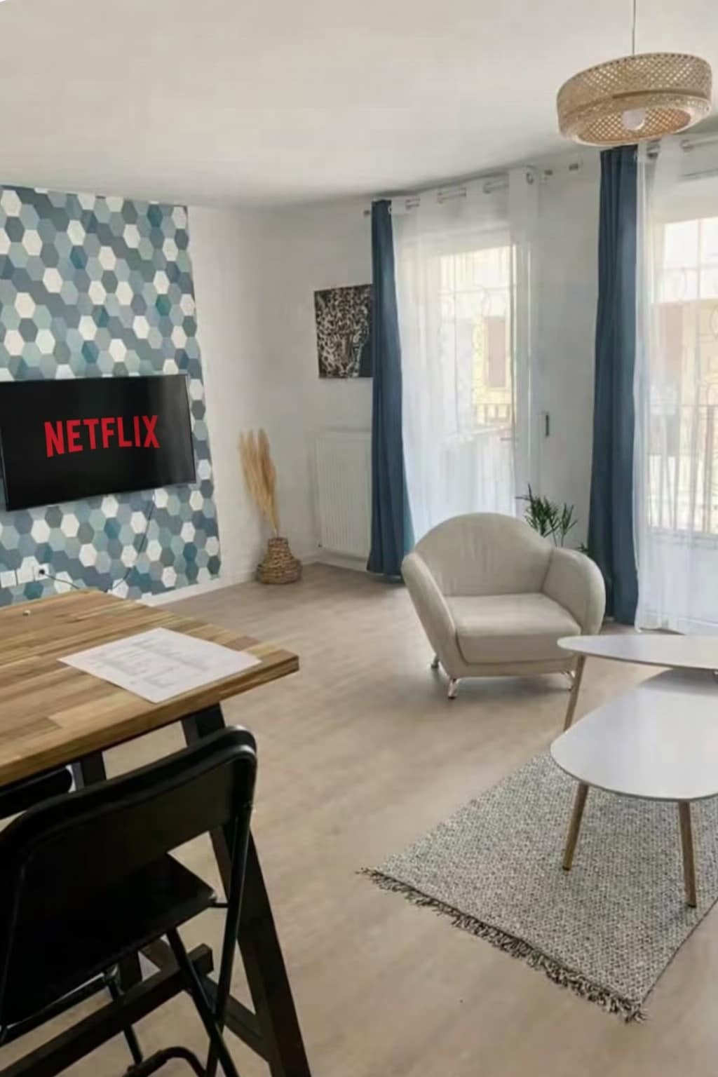 Situé à Cergy Port, à deux pas des restos et du bord de l’eau, cet appartement combine design et confort. Chaque détail crée une ambiance joyeuse et apaisante : mobilier rétro chic, fauteuil vert moelleux, cuisine graphique et frigo vintage. La chambre offre une vraie bulle de calme avec sa literie haut de gamme et son coin bureau. À 10 min à pied du RER A, de l’ESSEC et de la base de loisirs, c’est le point de chute idéal pour un séjour professionnel ou un week-end détente. Wifi et tv connectée