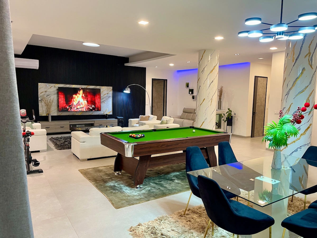 无边泳池、屋顶、海景和桌上足球
