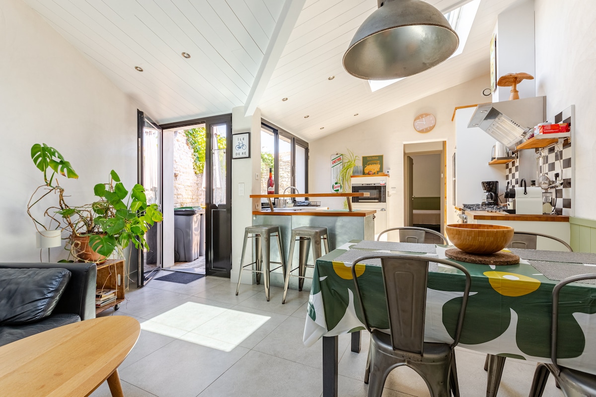Notre maison est chaleureuse, fonctionnelle, avec un jardinet. Elle se situe à Sainte-Marie-de-Ré, dans une ruelle typique de l'ile de Ré, à 500m de la plage et 200m de la place d'Antioche (ou vous trouverez tous les commerces : boulangerie, boucherie, tabac-presse, restaurant, locations de vélos...). Cette maison peut accueillir 4 personnes. Elle se compose d'une belle pièce à vivre, d'une cuisine équipée, de 2 chambres, une salle d'eau, wc séparé . Le jardin arboré est très agréable.