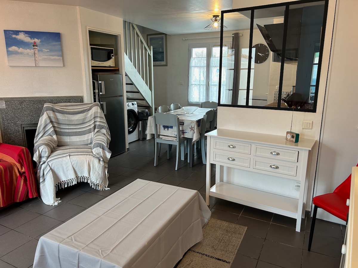 Maison récente très lumineuse, plain-pied, 51 m2, dans un quartier calme, proche de la plage très abritée de l'Arnérault qui jouxte le charmant petit port de plaisance très vivant de La Flotte . Cette maison est jumelée avec la nôtre , mais dispose d'une entrée indépendante coté rue,de même que côté cour . La cour permet de garer plusieurs véhicules . Tél:05.46.09.18.58 Les draps et linge de toilette ne sont pas fournis, ou feront l'objet d'un supplément :
