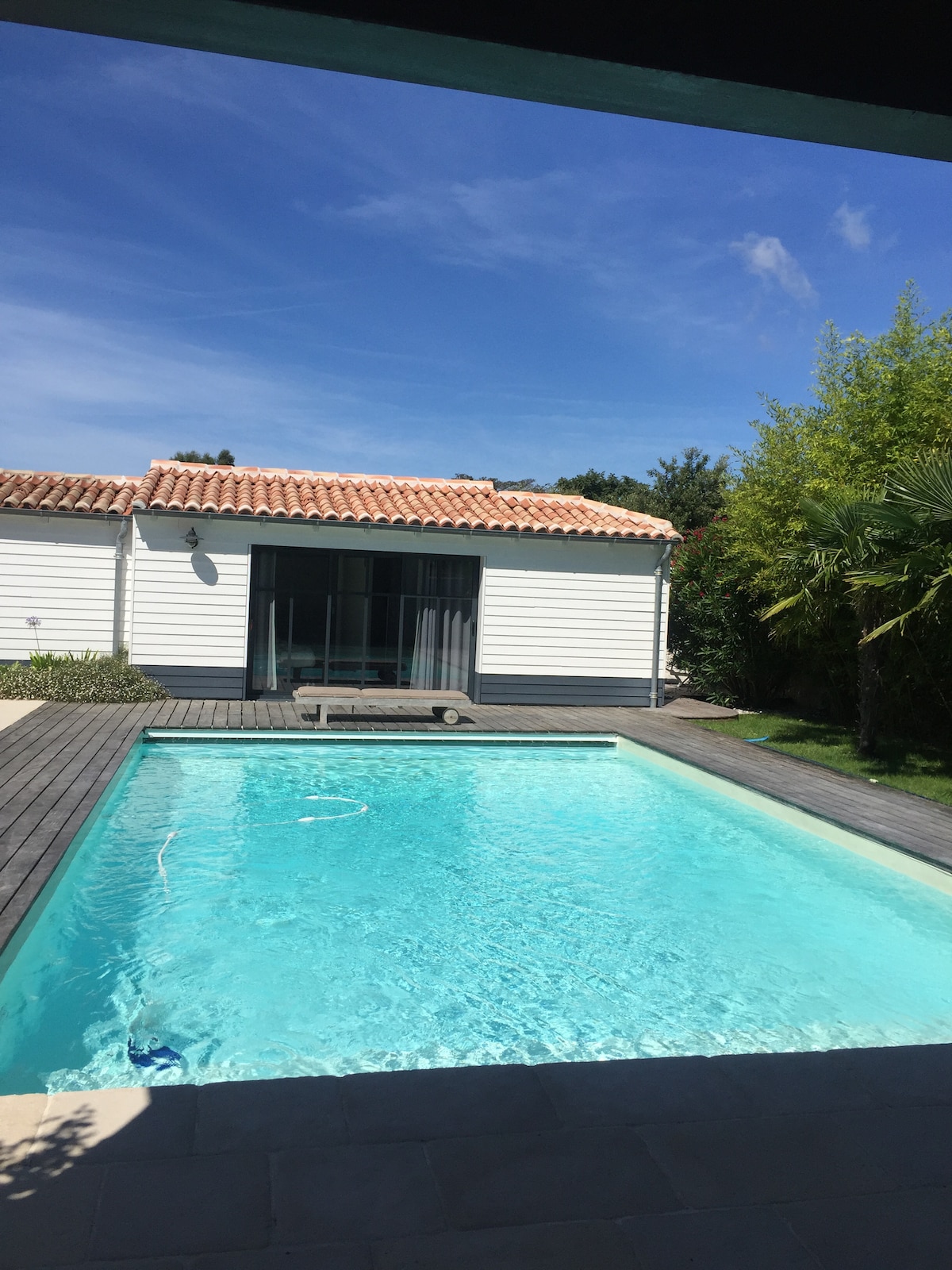 Très chouette maison familiale atypique et joyeuse, pleine de charme, avec ses grandes marches en bois et sa piscine chauffée, elle est chaleureuse et lumineuse, idéale pour grande famille ou groupe d'amis. Nous l'appelons la maison du bonheur. Notre cuisine est équipée pour faire à manger pour des grandes tablées. Le jardin clos de 4400 m², une maison principale de 300 m² et sa terrasse en bois, et deux jolies bungalows en bois sur 40m² avec chambres et sdb reliées aussi par une terrasse