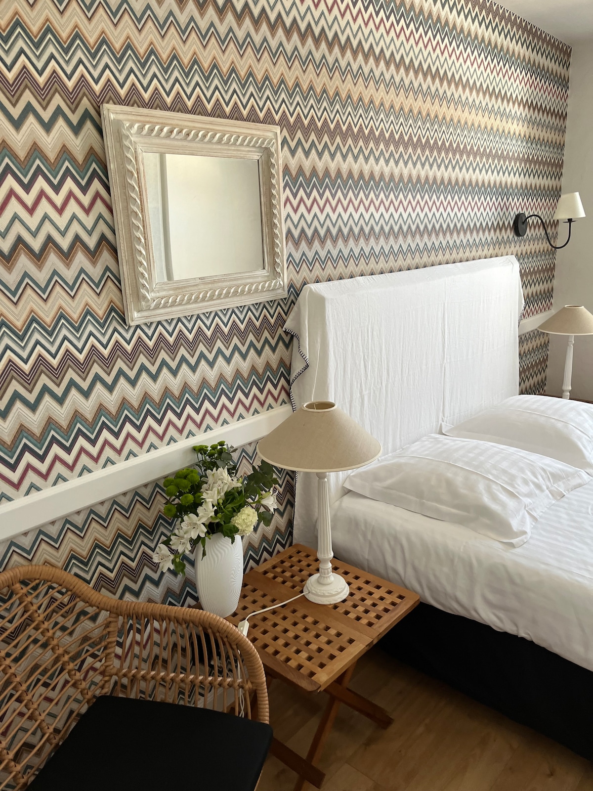 Gîte appart de plain-pied avec sa belle terrasse orientée plein sud, partiellement ombragée où il fait bon se reposer . Véritable havre de paix, le séjour aux harmonies douce , cuisine équipée, salon avec sofa-lit 140cm matelas épais 17cm. Les équipements ne sont pas en reste pour votre plus grand confort. La grande chambre parentale lit 160cm Queen size , tandis que dans la petite chambre au lit simple 90 cm . Et détente dans le patio-jardin fleuri de la demeure /Parking privé/ 1 véhicule .