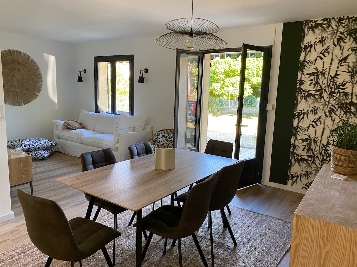 Situé dans un écrin de verdure, nous vous proposons un hébergement indépendant au sein de notre propriété de 1500m2 arborée d'arbres fruitiers, d'oliviers, palmiers, ... Au rez de chaussée, cuisine ouverte sur salon A l'étage, suite parentale climatisée, salle d'eau douche à l'italienne, wc suspendu Lit double 180*200, literie de qualité, draps, serviettes de toilette, produit vaisselle, éponge et torchons fournis Jardin clos, piscine 11*5 chauffée de mai à sept selon les conditions climatiques