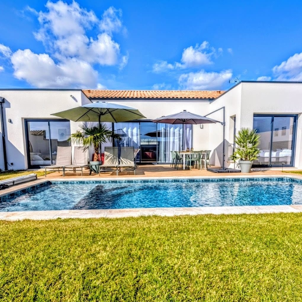 Cette maison d'architecte avec piscine chauffée et sans vis à vis offre un séjour détente pour toute la famille. Profitez d'une villa rétaise à 5mn à pieds de la plage de la Basse Benaie et à proximité des commerces de Sainte Marie de Ré. La villa offre des équipements haut de gamme. Toutes les chambres sont des suites et disposent de leur propre salle de douche. Il est également possible de stationner 1 véhicule (stationnement privé et sécurisé en plein air).